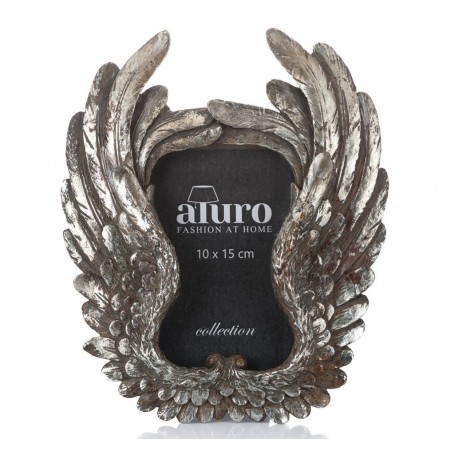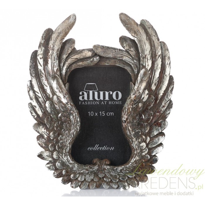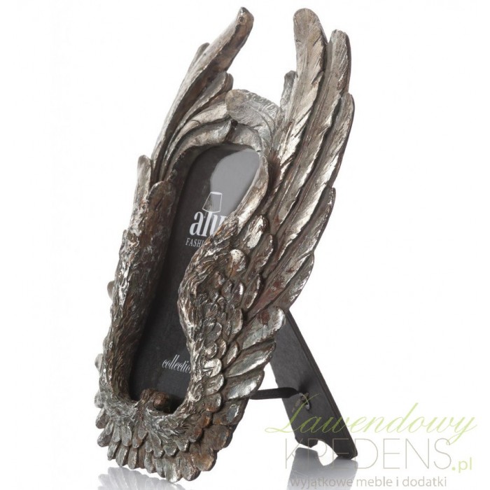 Ramka ozdobna Aluro w postarzanym stylu wygląda jak rozpościerające się ku górze skrzydła z miejscem na zdjęcie.