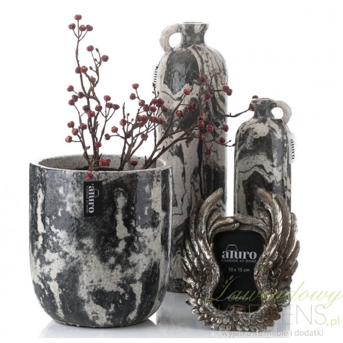 Artykuły dekoracyjne Aluro służą zarówno dekoracji jak i praktycznemu zagospodarowaniu wnętrza. Ramka ozdobna świetnie wyeksponuje zdjęcia portretowe. Ramka stojąca ma srebrny kolor z grafitowymi przetarciami. Jest ustawiona stabilnie na pojedynczej podpórce dzięki czmu możesz ją ustawić na półce lub na regale.