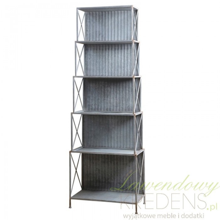 Regał Chic Antique to mebel z czterema półkami, których głębokość zwęża się ku górze. Tylnia ściana regału to blacha o prążkowanej strukturze. Metalowy regał wyróżniają także ciekawie zaprojektowane boki wykonane z metalowych krzyżyków znajdujących się z boku każdej półki. Meble industrialne to kwintesencja fabrycznego stylu w współczesnych wnętrzach.