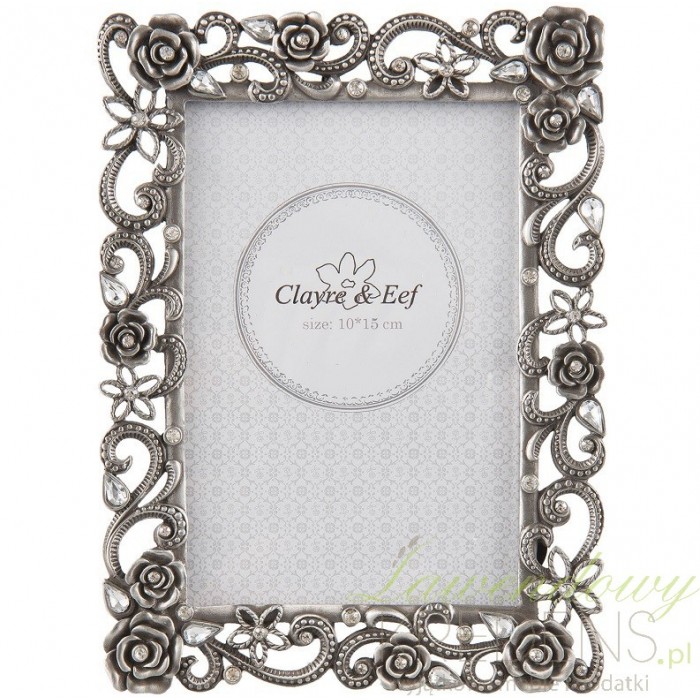 Wykorzystaj dekoracyjny potencjał ramki na zdjęcia od Clayre&Eef i umieść w środku portret najważniejszej dla Ciebie osoby. Ramka na zdjęcie zdobiona jest metalowymi wykuciami kwiatów róż i cyrkoni, pomiędzy którymi znajdują się kryształki w kształcie łezki. Wnętrze ramki jest okryte szkłęm, dzięki czemu zdjęcie nie zakurzy się i nie zniszczy. Polecamy ozdobne ramki również jako pomysł na upominek.