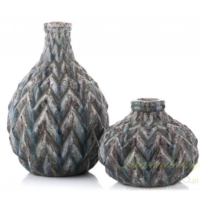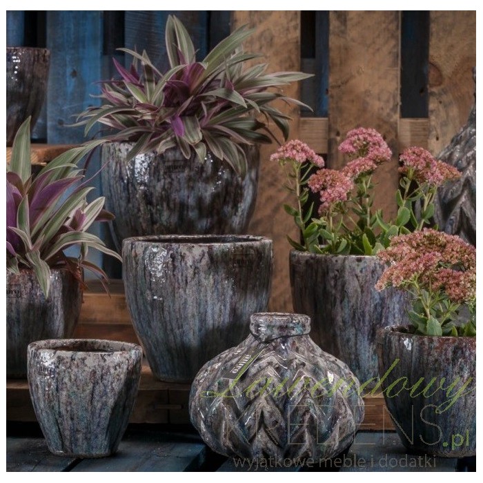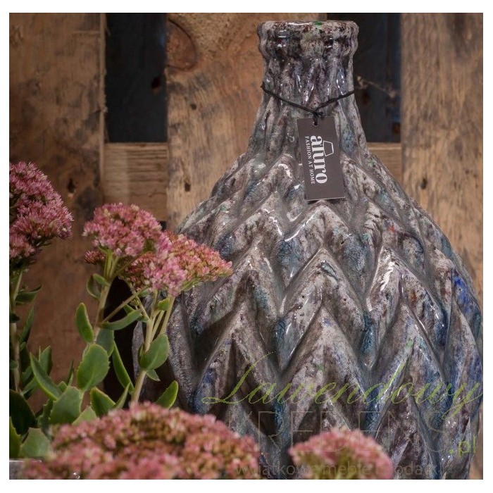 Postarzany wazon Aluro jest szeroki u dołu i posiada wąską szyjkę na górze. Został wykonany z ceramiki w szaro-grafitowym kolorze i ma delikatne akcenty koloru niebieskiego. Ten model będzie kapitalnie wyglądał z suszonymi kwiatami lub z sztucznymi gałązkami. Artykuły dekoracyjne Aluro przygotują Twój dom na każdą porę roku.
