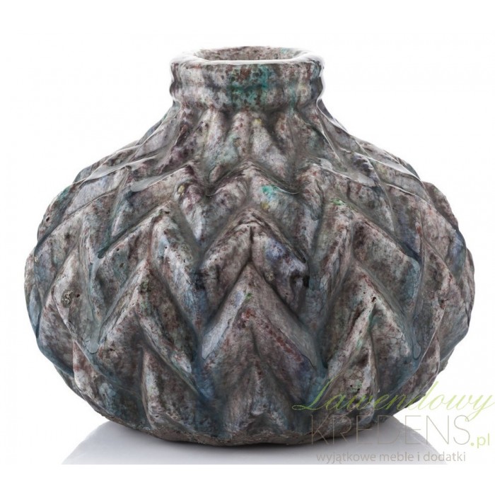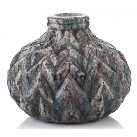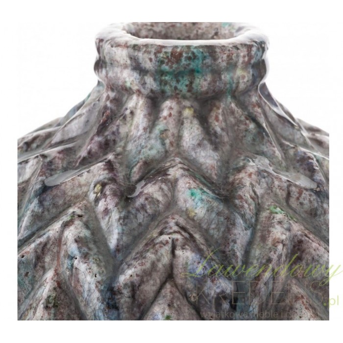 Wazon Aluro z kolekcji Miublu ma kulisty kształt, a jego budowa przypomina kształtem karczocha z listkami uniesionymi ku górze.