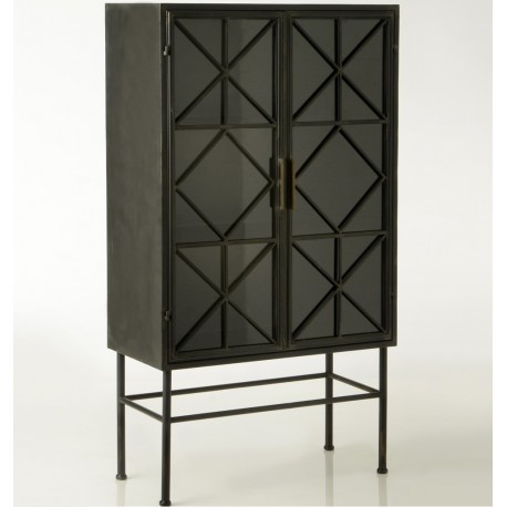 Metalowa witryna industrialna ma przeszklone drzwi, które są najbardziej atrakcyjnym elementem tego mebla z uwagi na figury geometryczne ułożone z metalowych prętów. Podstawę komody tworzą proste i smukłe nóżki. Starannie dobrane kolory detali takich jak uchwyty zachwycą każdego kto miłuje się w prostocie. Hołdując minimalizmowi i loftowym wnętrzom polecamy Ci gorąco meble metalowe takie jak meble industrialne!