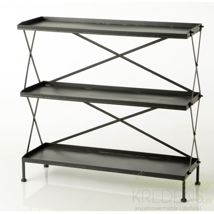 Konsola została w całości wykonana z metalowych elementów w ciemnym, grafitowym kolorze. Metalowa konsola ma trzy półki, które są nie tylko długie ale mają również lekko podwyższone krawędzie. Półki są połączone ze sobą metalowymi. Krzyżujacymi się pod ostrym kątem prętami. Pasja i kreatywność naszych projektantów mebli loftowych to szansa dla Ciebie na urządzenie wyjątkowego wnętrza. Metalaowe meble takie jak meble w stylu industrialnym to hit współczesnych aranżacji.