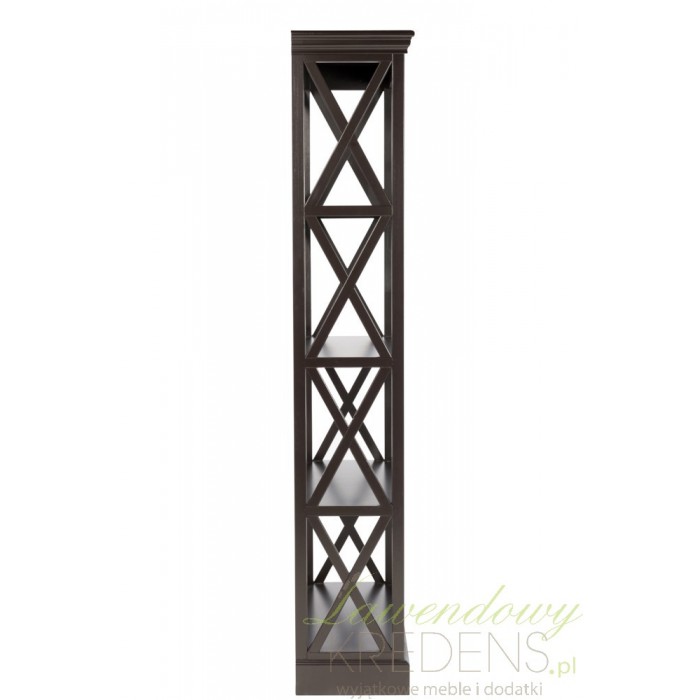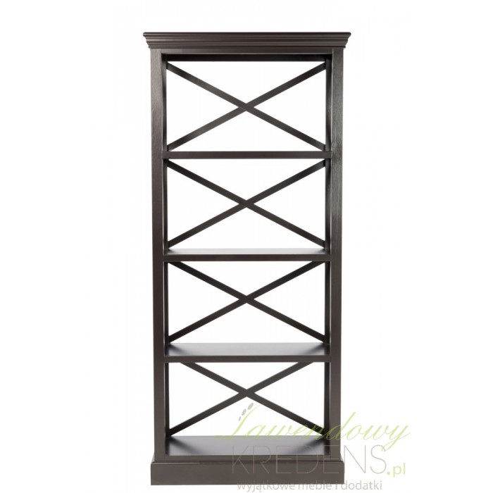 Czarny regał prowansalski Croxi to niezwykle modne połączenie prostej formy mebla z ciemną barwą. Ten regał to odpowiednie miejsce nie tylko na książki ale również kosze wiklinowe i pudełka ozdobne.