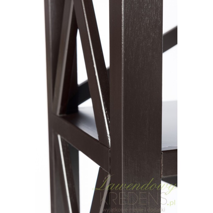 Regał w stylu prowansalskim z trzema półkami wykorzystaj w roli biblioteczki w swoim gabinecie lub w pokoju nastolatka, ale również w salonie. Czarny regał prowansalski ma prosty stelaż wzbogacony o skrzyżowane ze sobą szprosy na bokach i na tylnej ścianie. Prosta forma i solidność to cechy, za które najbardziej cenią go zwolennicy minimalizmu. Wybierz do swojego domu piękne meble prowansalskie, najciekawsze propozycje czekają na Ciebie w naszej ofercie!