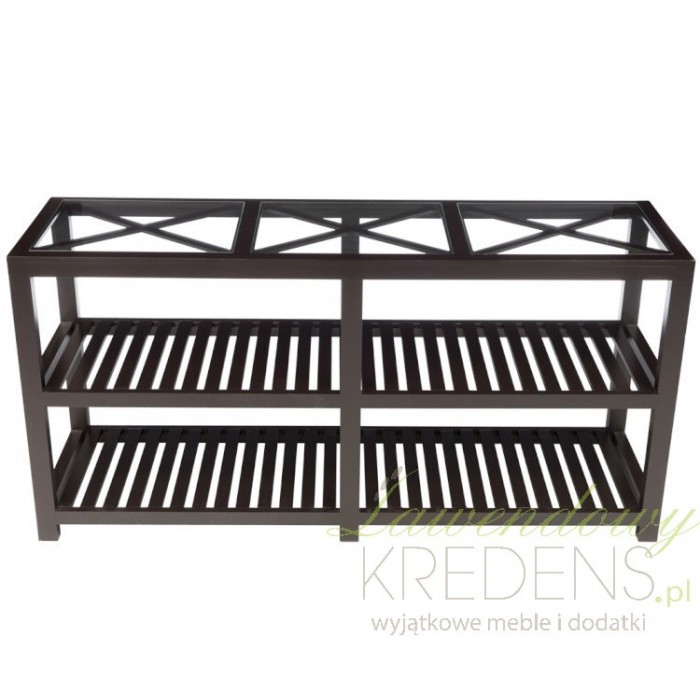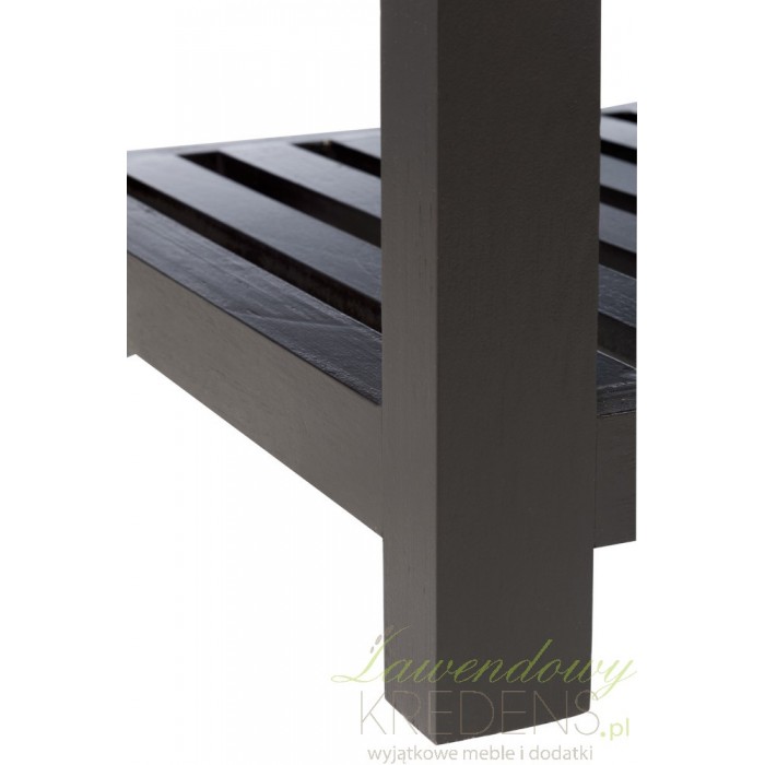 Czarna konsola prowansalska jest podłużna, zatem najlepiej będzie wyglądała ustawiona przy ścianie. Wykonana została z drewna w kolorze czarnym i szkła. Wyposażana w dwie półki wykonane z drewnianych deseczek może okazać się doskonałym miejscem na dekoracyjne kosze i pudełka. Meble prowansalskie to propozycja urządzenia bardzo klimatycznego wnętrza