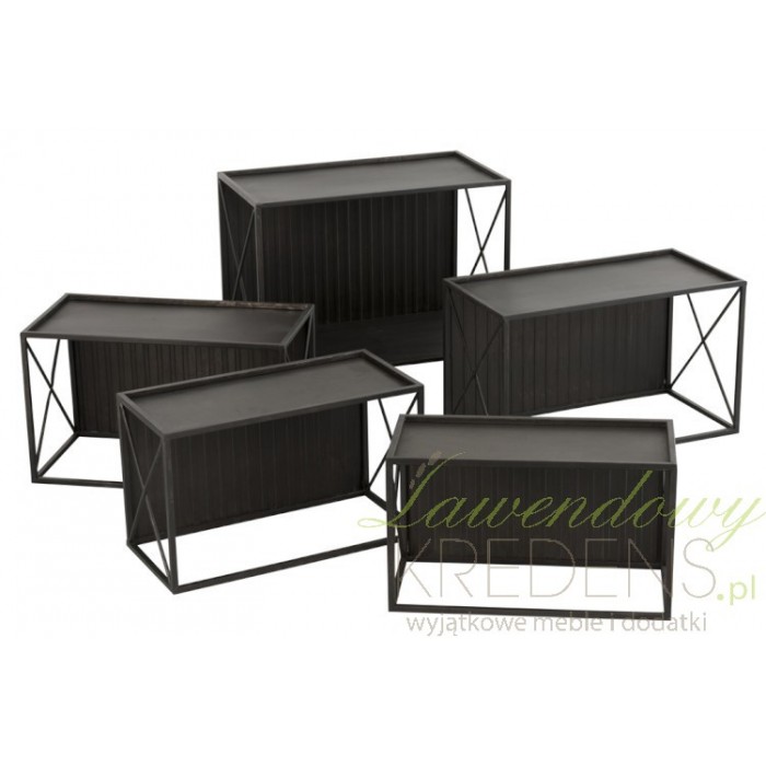 Wykonany w całości z metalu regał industrialny składa się z pięciu elementów, które ustawione jeden na drugim tworzą praktyczny mebel do salonu, gabinetu i do przedpokoju. Każdy z elementów ma inny rozmiar, dlatego komponowanie z nich jednego mebla może przypomnieć Ci czasy stawiania budowli z klocków LEGO. Cechy charakterystyczne tego mebla to : trwałość, funkcjonalność i ponadczasowość. Meble w stylu industrialnym - Twój dom na nie zasługuje!