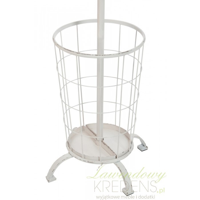 Wieszak podłogowy z koszem na prasole, w kolorze jasnego kremu z przecieranymi brzegami!