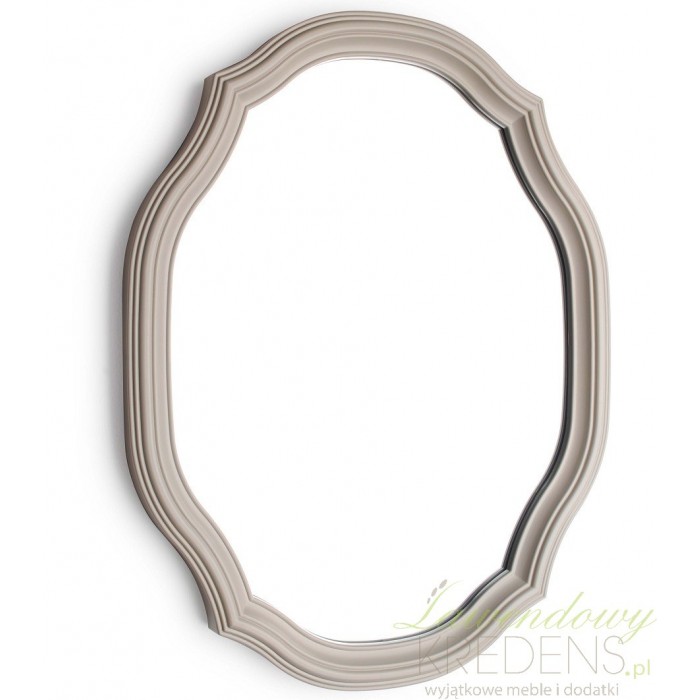 Beżowe lustro prowansalskie, którego rama jest pofalowana i ma formę niczym francuskie rzeźbienie to doskonały sposób na to by dopełnić aranżację uroczym i praktycznym dodatkiem.