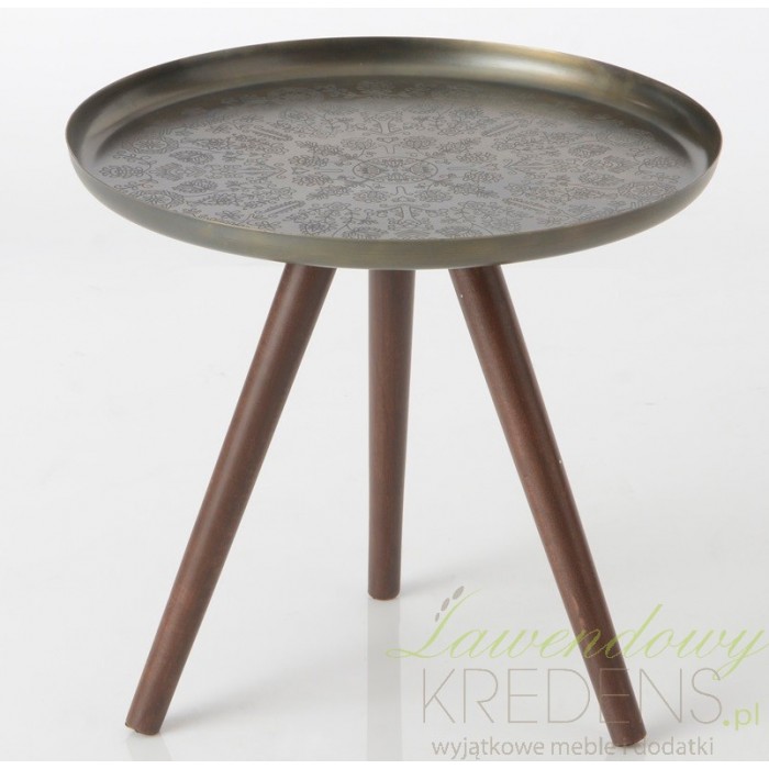 Stoliki kawowe jakie znajdziesz w naszej ofercie przyjmują różnorodne formy. Najpiękniejsze są jednak te oryginalne, które wykonano z trwałych materiałów z dbałością o najmniejszy szczegół. Stolik kawowy etno jest ustawiony na trzech nogach z brązowego drewna. Największe wrażenie robi jego blat, który ma miedziano-złoty kolor i cudne, gęsto rozmieszczone wzorki.