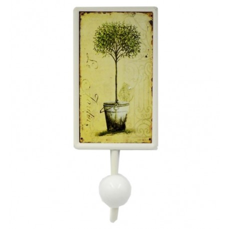 Metalowy wieszak prowansalski jest zrobiony z metalu. Jego prowansalski design zawdzięczany jest prostokątnemu obrazkowi z rośliną w donicy. Postarzenia na krawędziach i ciepły kolor obrazka wprowadzą odrobinę klimatu retro. Wybierz dodatki do domu takie jak wieszaki w stylu prowansalskim, uszyte na miarę wymagających i praktycznych wnętrz.