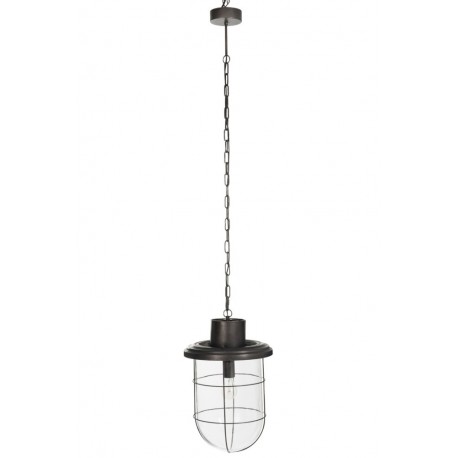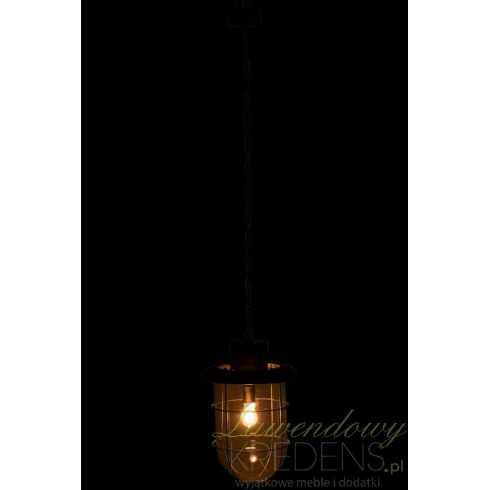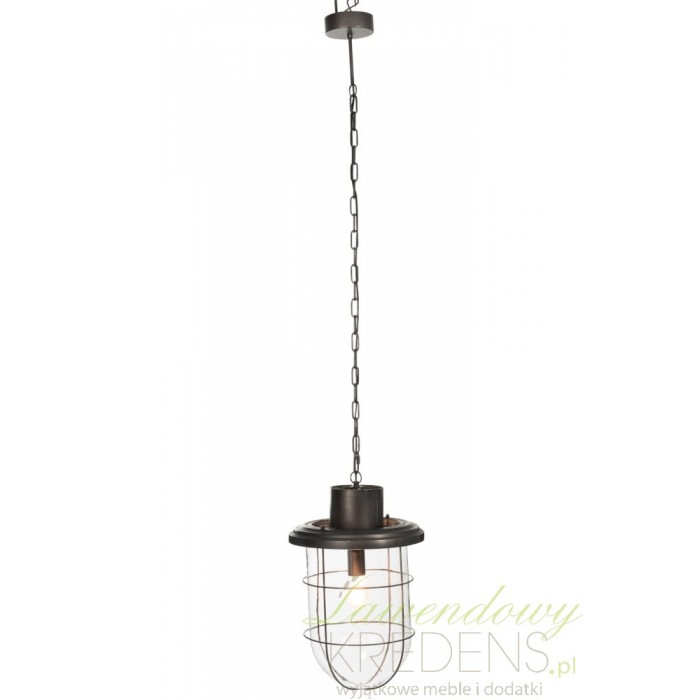 Metalowa lampa industrialna na łańcuchu już na pierwszy rzut oka wygląda na solidną i trwałą. Na końcu długiego łańcucha znajduje się szklany klosz osłonięty dodatkowo metalową kratką. Ta lampa wygląda na zabraną z jednej z starych fabryk. Lampy w stylu industrialnym wprowadzą do wnętrza motyw chłodu i dopełnią tym samym loftowe i skandynawskie aranżacje.