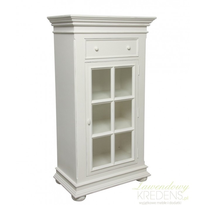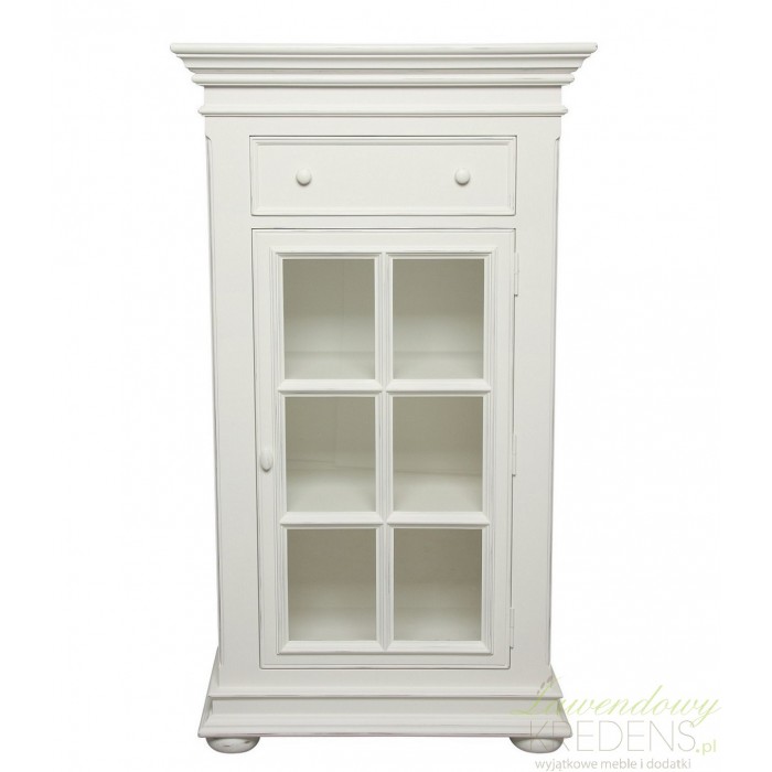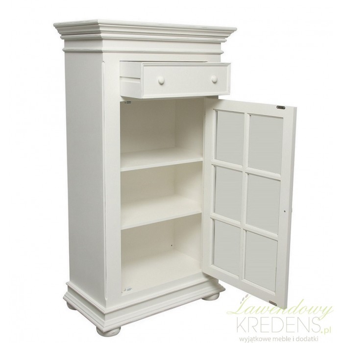 Wysoka szafka Venitiennes z szklanymi drzwiami oraz szufladką spełni Twoje marzenia o atrakcyjnej i funkcjonalnej przestrzeni.