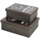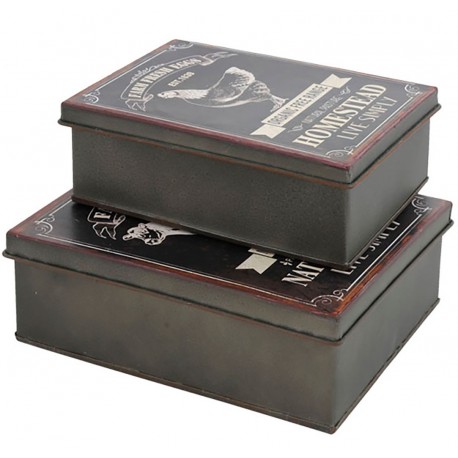 Dwa metalowe pudełka inspirowane wzornictwem w stylu retro mają wiele postarzeń, dzięki którym zyskują na atrakcyjności.