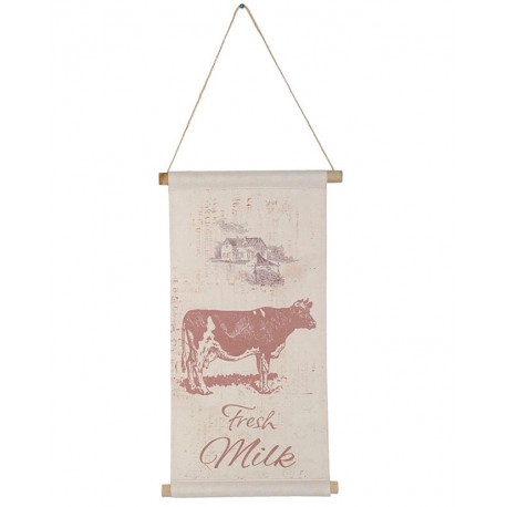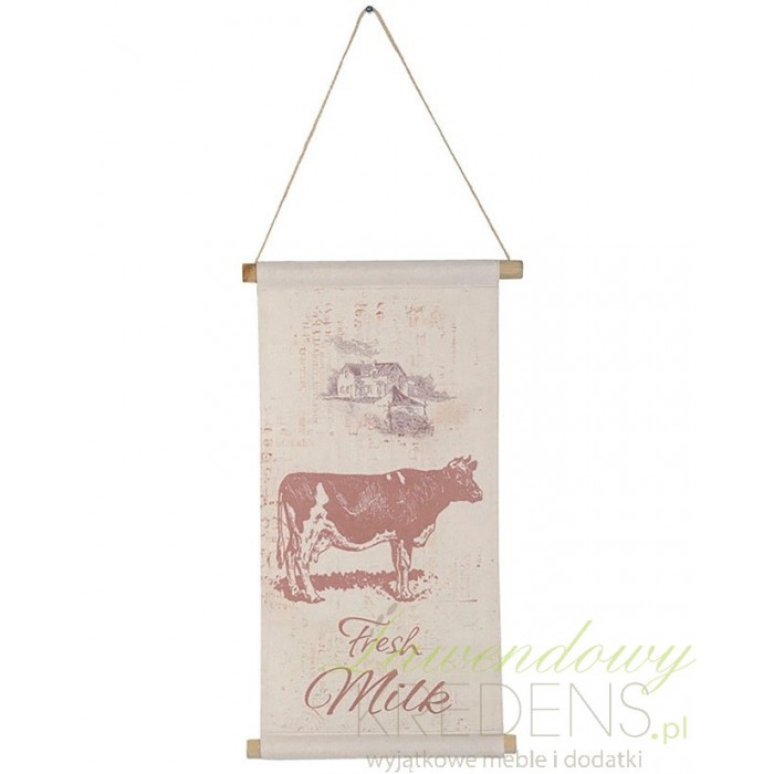 Obraz z krową w formie mapy fantastycznie nadaje się do wnętrz takich jak kuchnie, domowe restauracje i bary mleczne. Obraz mapa jest wykonany na materiale, który ograniczają z góry i z dołu dwie brązowe deseczki. Do górnej z nich przymocowany jest parciany sznurek, za pomocą którego zawiesisz obrazek na ścianie lub na drzwiach. Dekoracje Clayre&Eef to jedne z najbardziej pomysłowych ozdób na ścianę.