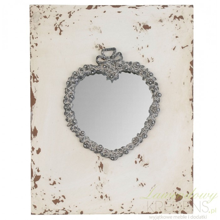 Lusterko prowansalskie ma ramę w kształcie prostokąta, w której sercu znajduje się okienko z połyskującym zwierciadłem.