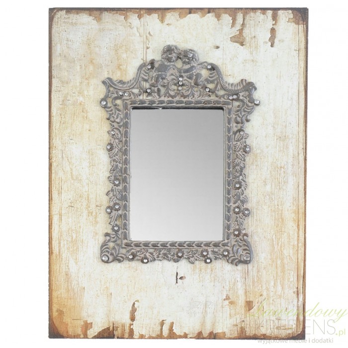 Lustra w stylu prowansalskim z łatwością rozpoznasz spośród zwykłych luster ponieważ poza rzeźbieniami mają także efektowne postarzenia. Kremowe lusterko prowansalskie to model, w którym nie oszczędzono ani postarzeń ani bogatych rzeźbień. Dodaktowo na szarym i pobielonym subtelnie ornamencie znajdują się drobne brylanciki. To lustro wygląda jak stare zwierciadło prosto z komnaty królowej.