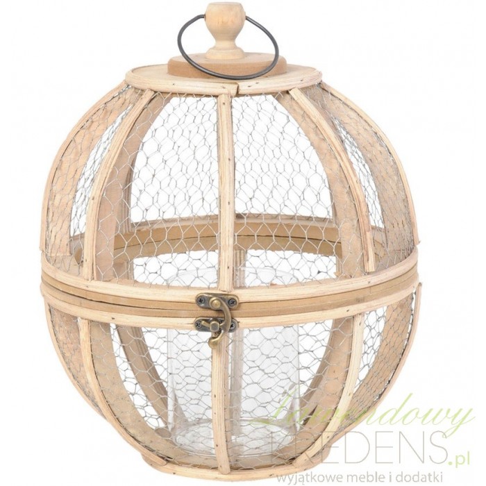 Ażurowe lampiony zapewnią Ci cudowny efekt świetlny, jakiego nie mogą zaoferować żadne inne lampiony. Lampion ma kształt zbliżony do kuli i konstrukcję wykonaną z drewnianych deseczek w kolorze jasnobrązowym. Metalowy uchwyt na górze pomoże Ci dostać się do wnętrza lampionu, który otwiera się w połowie. Ażurowy lampion śmiało możesz wykorzystać w klimatycznym wnętrzu retro ale też rozgrzać za jego pomocę atmosferę we wnętrzu loftowym.
