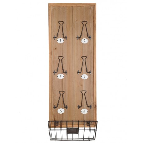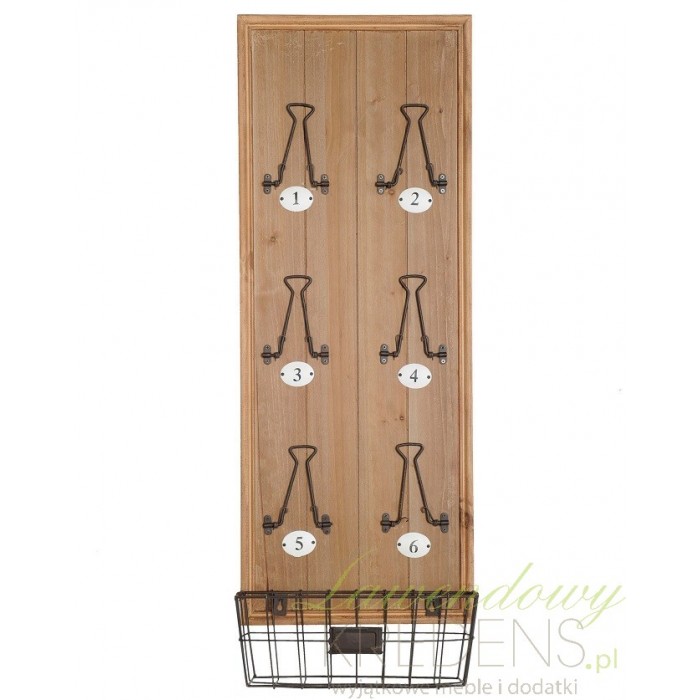 Dodatki w stylu retro od Clayre&Eef to kwintesencja przyjaznego klimatu w postaci użytkowych akcesoriów. Podłużna tablica na zdjęcia w kolorze ciepłego brązu ma zamontowane sześć klipsów metalowych oraz kratkowany kosz. Każdy z klipsów oznaczony został numerem na białej, owalnej tabliczce. Akcesoria, które wybierasz do ozdoby ściany w przedpokoju lub w pokoju dziecka mogą być równie dobrze funkcjonalne.