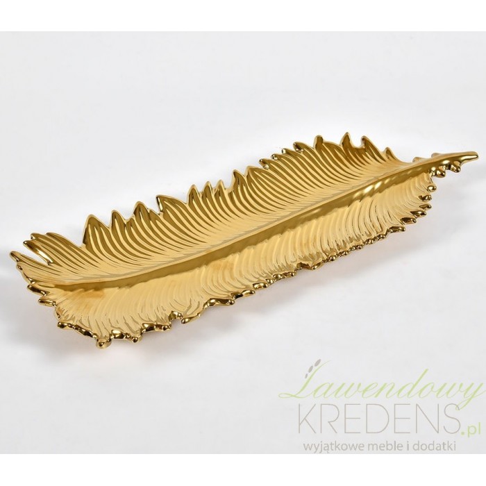 Marka Belldeco specjalnie dla eleganckich wnętrz przygotowała wyjątkowe dodatki z kolekcji Gold Line. Przyjrzyj się uważnie każdemu z nich i zdecyduj się na zestaw niepowtarzalnych akcesoriów do sypialni lub salonu. Taca w kształcie liścia ma efektownie unoszące się ku górze krawędzie, których niereguralna linia przypomina budowę prawdziwego, jesiennego liścia. Patera Belldeco to świetne miejsce na owoce lub słodycze.
