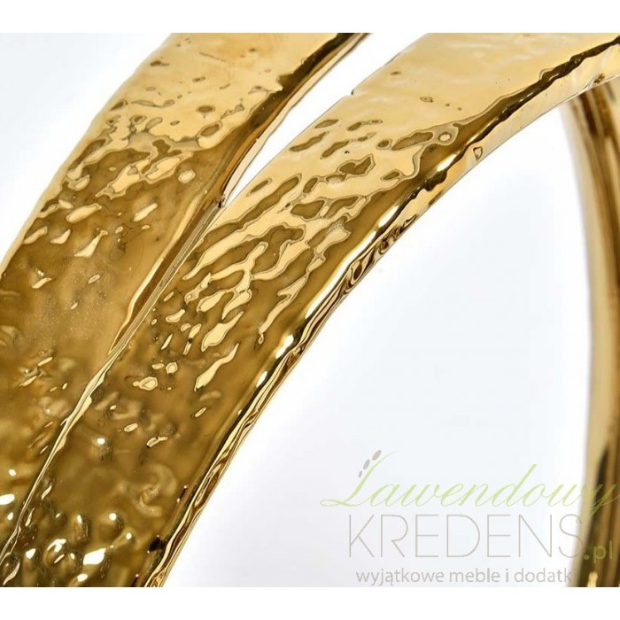 Oryginalny świecznik Belldeco przypomina kształtem duży pierścień w kolorze połyskującego złota.