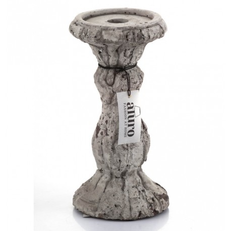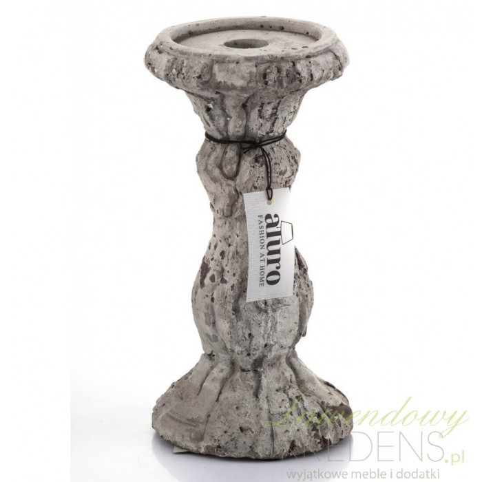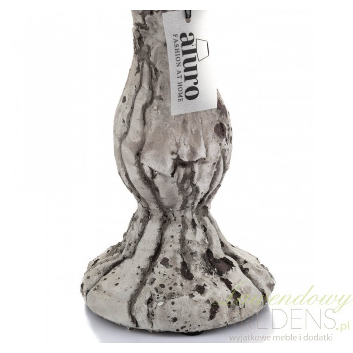 Świecznik Aluro z kolekcji Hebe ma szary kolor i został wykonany z cementu, dlatego wygląda na masywny i będzie stabilną podstawą dla każdej świecy.