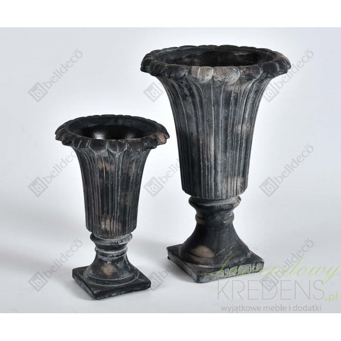 Ta postarzana osłonka puchar spełni marzenia wszystkich o urządzeniu antycznego wnętrza z nutą dobrego stylu. Osłonka prowansalska ma kolor grafitowy i niczym plisowana, pomiędzy rzeźbieniami jest bielona i pordzawiona. Puchar Belldeco na kwadratowej podstawie wykorzystaj do świeżych lub suszonych kwiatów o długich łodygach. Dekoracje od Belldeco możesz wykorzystać w wielu aranżacjach.