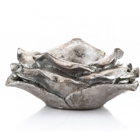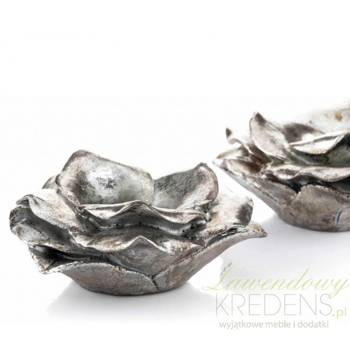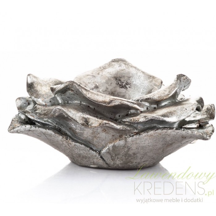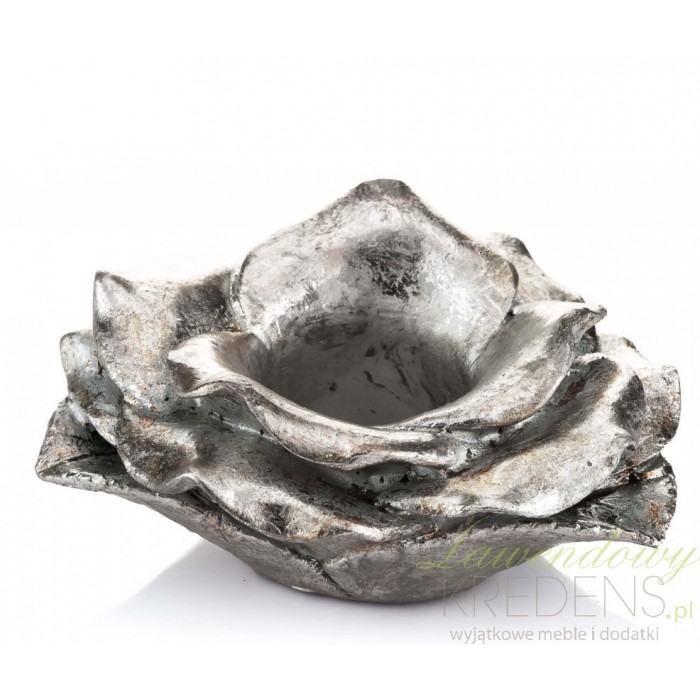 Świecznik prowansalski róża w srebrnym kolorze z przetarciami przykuje uwagę każdego!