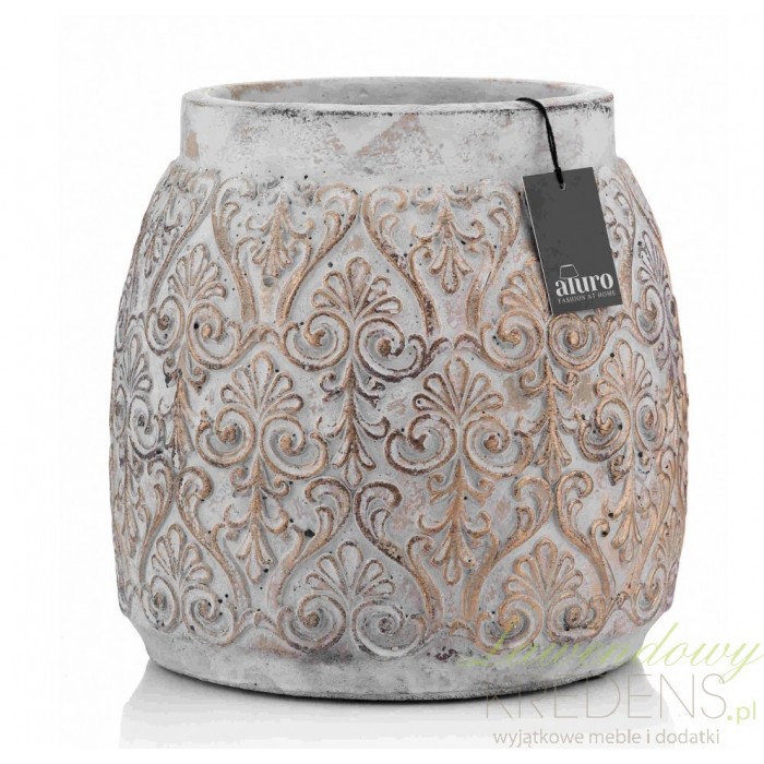 Osłonka aluro w stylu prowansalskim wykonana z trwałego materiału jakim jest cement. Unikalna osłonka idealna na każdą roślinę!