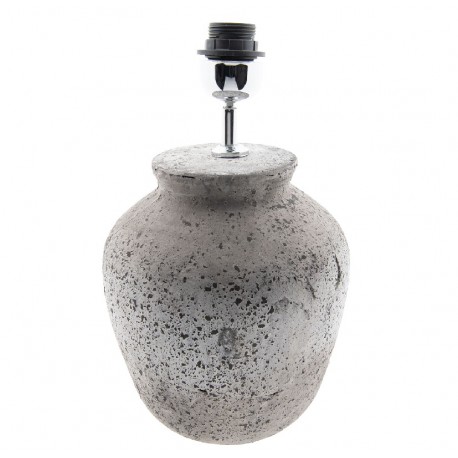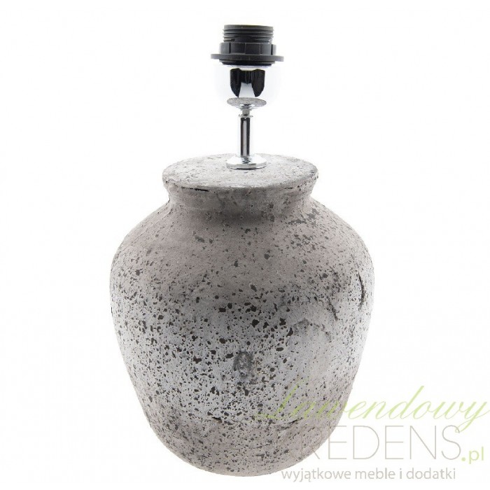 Lampka stołowa ma lekko kulistą nogę z terakoty i srebrny uchwyt na gwint. Drobne wgłębienia sprawiają, że lampa wygląda jak wykonana z kamienia. Razem z kolorowym abażurem szara lampa będzie wyglądała zjawiskowo. Warto wybrać szare lampki stołowe na stolik nocny lub komodę.