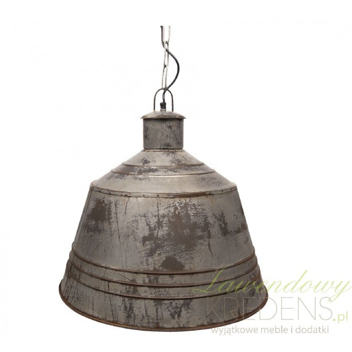 Metalowa lampa sufitowa na łańcuchu z kolekcji lamp industrialnych Clayre&Eef wygląda na bardzo starą i zniszczoną.