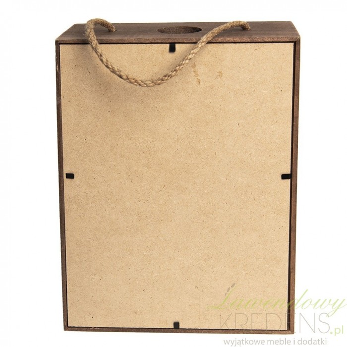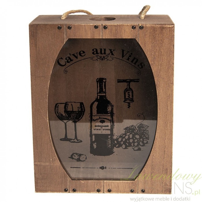 Drewniane pudełko na korki po winie ustawione w widocznym miejscu nada wnętrzu klimatu prowansalskich winnic. Zaprojektowane z myślą o prawdziwych koneserach przyda się również jako forma urodzinowego prezentu. Pudełko ma przeszkloną przednią ścianę, w której wstawiono okienko w kształcie owalu. Za okienkiem dostrzeżesz grafikę w czarnym kolorze, przedstawiającą wino, kieliszki do wina oraz winogrona. Pozostałe artykuły dekoracyjne znjadziesz w ofercie marki Clayre&Eef.