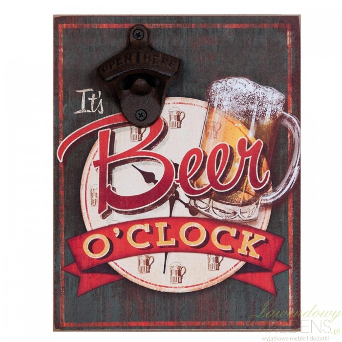 Stylowy obrazek retro z otwieraczem do butelek to pomysł na praktyczne wykorzystanie wolnego miejsca na ścianie w kuchni lub w barze.