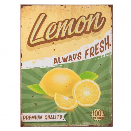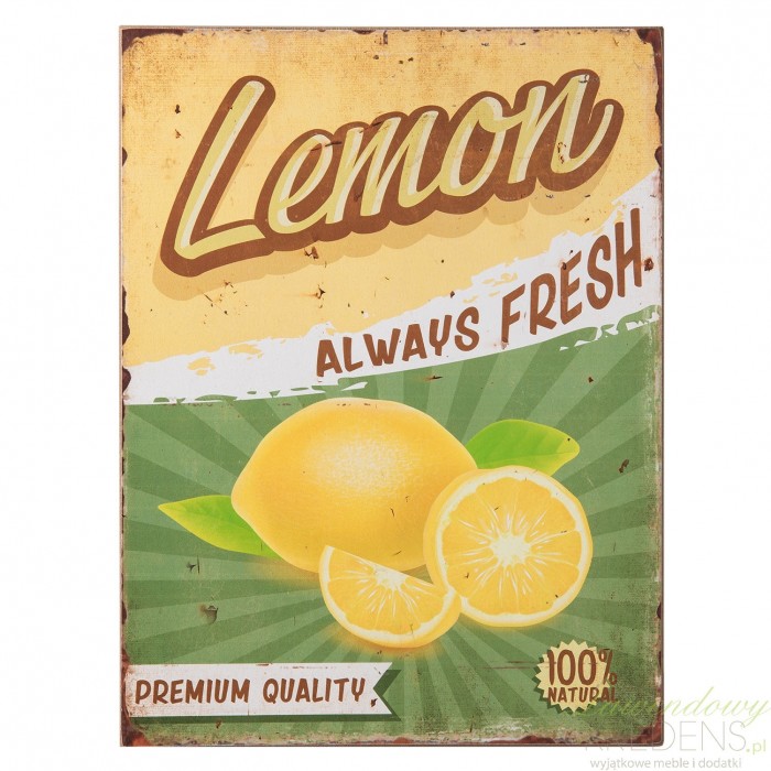 Obrazki do kuchni z kolekcji retro od marki Clayre&Eef zainspirują każdego, kto szuka oryginalnych i świeżych dodatków. Obraz do kuchni retro ma zielono-żółte tło, na którym również znajdują się napisy i przekrojona na pół, soczysta cytryna. Wykonany w całości z mdf może zostać zawieszony na ścianie lub ustawiony na półce i oparty o nią. Obrazki retro to modne i bardzo stylowe dodatki!