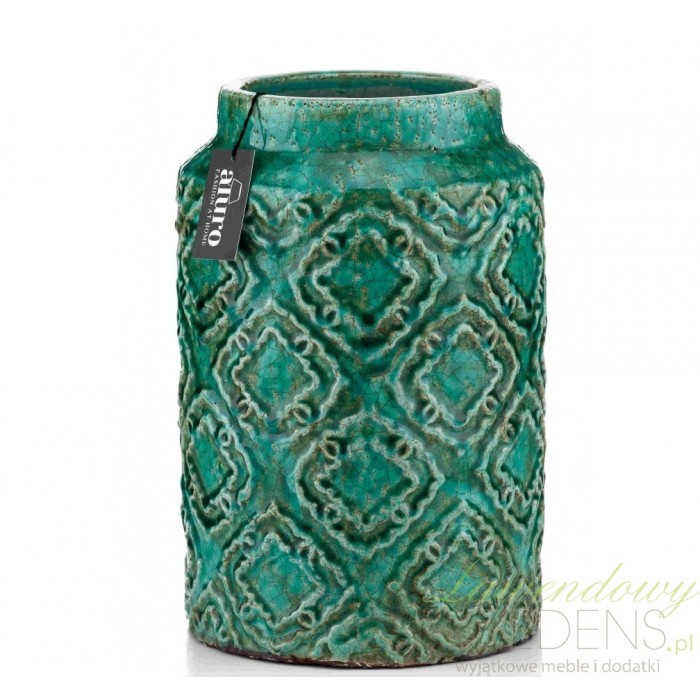 Osłonka Aluro w rzeźbione romby poza oryginalną kolorystką wyróżnia się również ciekawymi spękaniami, które pokrywają całą jej zewnętrzną powierzchnię. Wykonana z ceramiki znajdzie zastosowanie na przykład jako wazon na kwiaty lub wolnostojąca dekoracja. Osłonki Aluro to zdecydowanie jedne z najbardziej kreatywnych możliwości wykończenia wnętrza. Zamów artykuły dekoracyjne od Aluro już teraz!