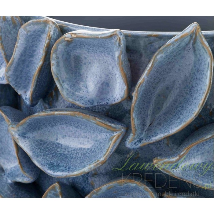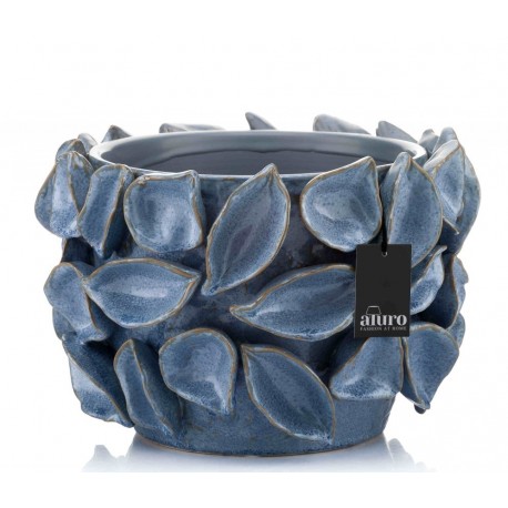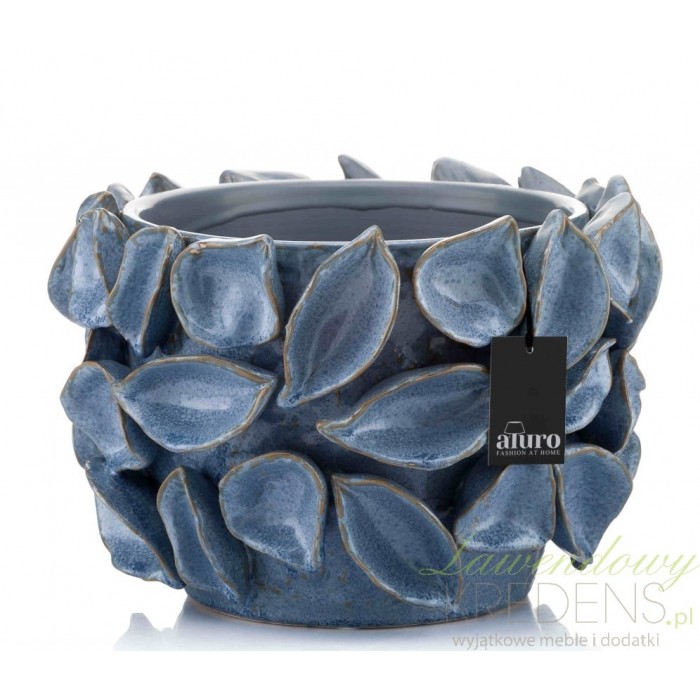 Osłonka w stylu prowansalskim jest okrągła, a przyczepione do jej zewnętrznej powierzchni ceramiczne płatki robią niesamowite wrażenie. Osłonka Aluro ma lekko połyskującą powierzchnię oraz współgrające ze sobą przetarcia widoczne na krawędziach. Błękitna osłonka Hadiko może zostać wykorzystana na przykład na stoliku kawowym lub na komodzie, wypełniona po brzegi świeżymi kwiatami. Lubisz niebanalne artykuły dekoracyjne? Oferta marki Aluro jest skierowana właśnie do takich osób jak Ty!