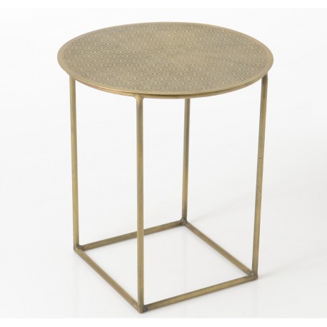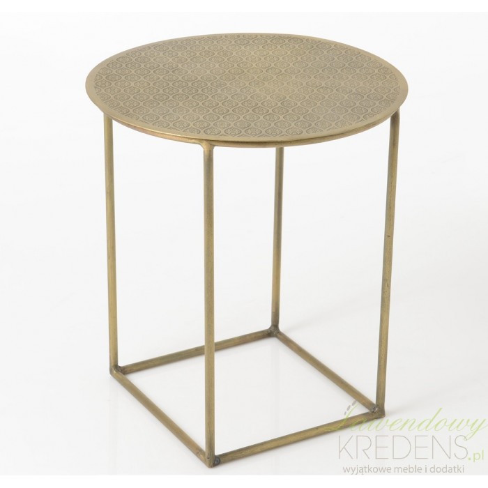 Prosty i jednocześnie fantazyjny stolik kawowy, którego blat ma okrągły kształt i ozdobny wzór przypominający etniczne dzieło sztuki. Stolik industrialny w kolorze starego złota nada piękny klimat w każdym salonie. Stoliki kawowe francuskiej produkcji to niewielkie meble, na których zmieścisz nie tylko filiżankę z kawą ale również wazon z bukietem świeżych kwiatów. Zamów już teraz, aby mieć go przy sobie podczas relaksu i spotkań w gronie bliskich Ci osób.