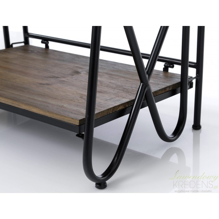 Regał industrialny składający się z trzech półek wykonanych z drewna jodłowego oraz metalowej ramy!