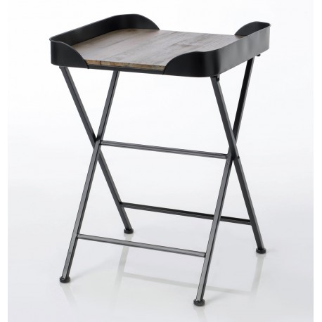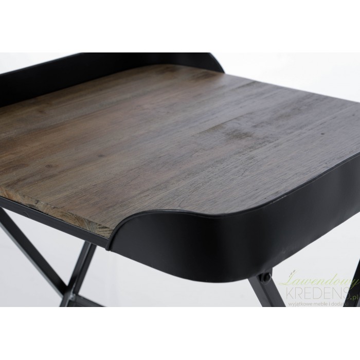 Stolik z rantem wykonany z metalu i drewna to wyjątkowo prosty, ale bardzo funkcjonalny mebel.