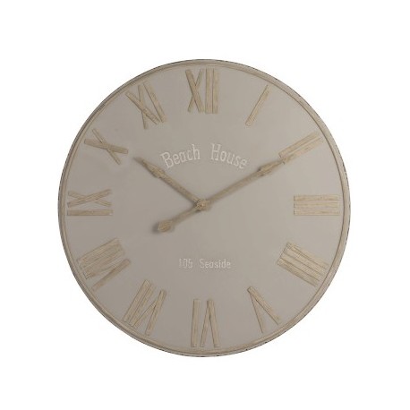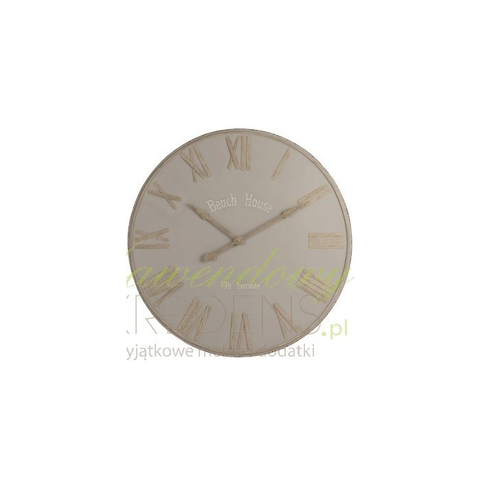 Zegar marynistyczny z kolekcji Home Decorations znamienicie zaakcentuje niebanalny design Twojego wnętrza. Duży zegar został wykonany z metalu, ozdobiony napisami "Beach House" i wyglądającymi na drewniane cyframi rzymskimi. Krawędź zegara oznaczona ciemniejszą linią sprawi, że zegar wyróżni się także na ścianach w tym samym kolorze. Zegary w stylu marynistycznym to zegary ścienne, na które możesz liczyć, urządzając dom i apartament nad wybrzeżem.