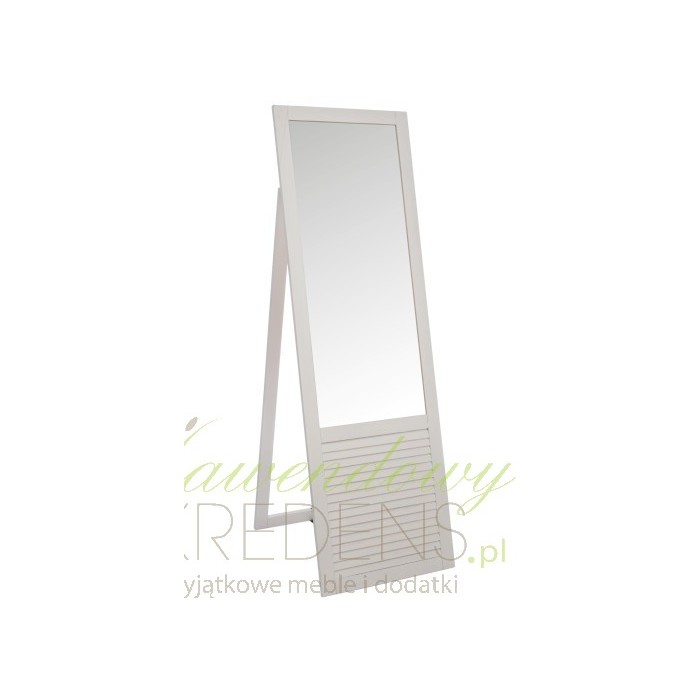 Lustro podłogowe jest perfekcyjne dzięki jasnej kolorystyce i zdobieniom w formie żaluzji u dołu. Klasyczny kolor bieli genialnie odnajdzie się w pomieszczeniach w różnorakim stylu. Białe lustro prowansalskie to zwierciadło, w którym będziesz mógł zobaczyć odbicie całej swojej sylwetki i przejrzeć się przed wielkim wyjściem. Urządzasz wnętrze w stylu prowansalskim? Nie może w nim zabraknąć stylowych luster!