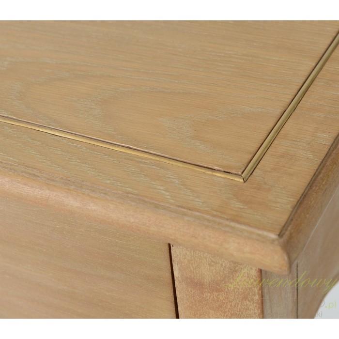 Ta elegancko prezentująca się konsola w stylu prowansalskim została wykonana z drewna w kolorze ciepłego, rozjaśnionego brązu oraz elementów mdf.