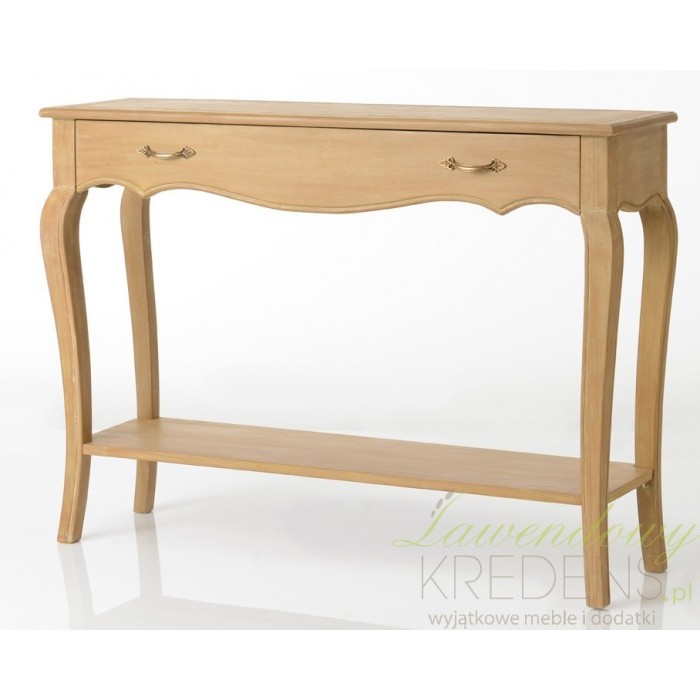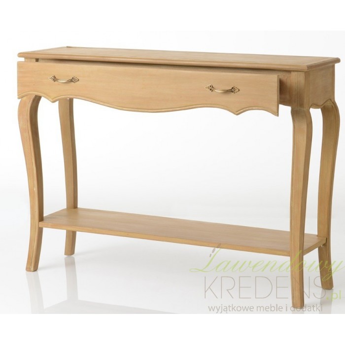 Brązowe meble w stylu prowansalskim Memori charakteryzujące się subtelnym kształtem pełnym zaokrągleń i fal, a także pięknym kolorem. Konsola nie tylko świetnie się prezentuje, ale również jest praktyczna - za sprawą dużej szuflady i półki. Na dolnej półce świetnie sprawdzą się wiklinowe kosze lub książki. Jesteśmy przekonani o tym, że będziesz dumny z tego mebla!