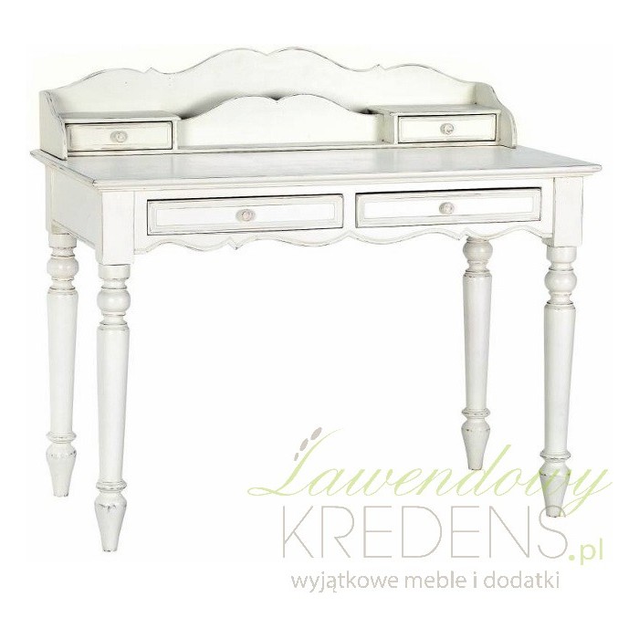 Biurko Belldeco z serii Harmonie charakteryzującej się prowansalską stylistyką i wybarwieniem w kolorze antycznej bieli. Biurko uzupełni umeblowanie każdego, stylowego biura i gabinetu. Połączone z innymi meblami z francuskich i prowansalskich kolekcji, stworzy niezwykle ciekawą aranżację wnętrza pełną finezyjnej elegancji. Wspaniale będzie komponować się z drewnianym krzesłem w kolorze beżu, szarości, a nawet czerni.