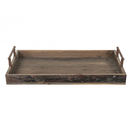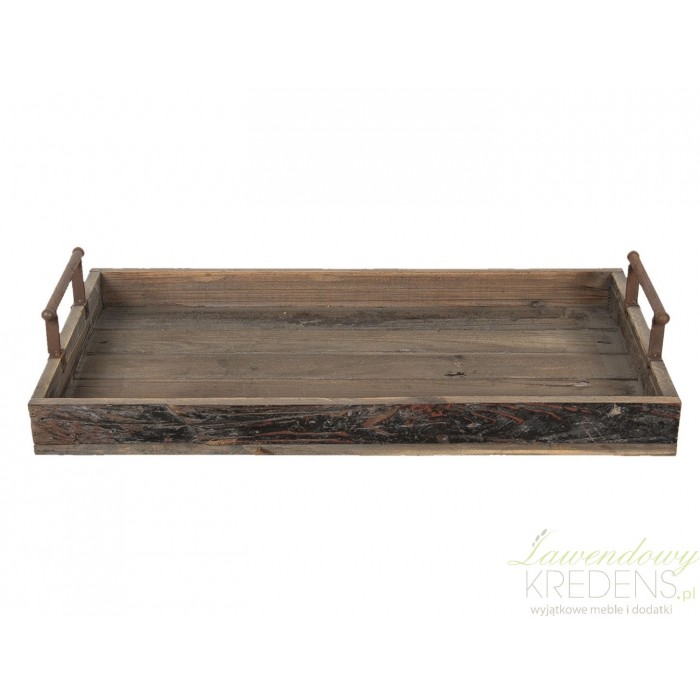 Brązowa, prostokątna taca firmy Clayre&Eef z poręcznymi uchwytami ułatwiającymi przenoszenie pochodzi z kolekcji Vintage.