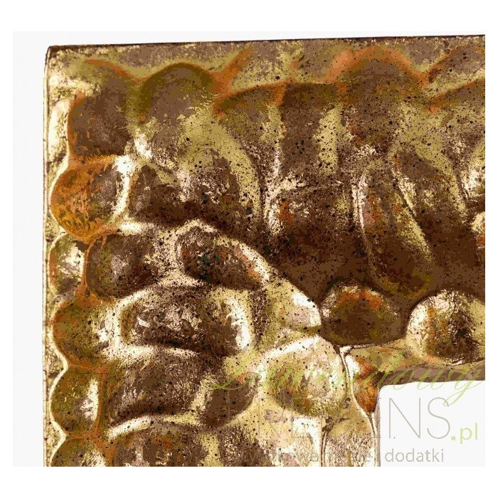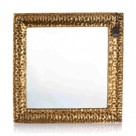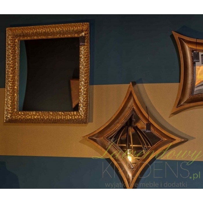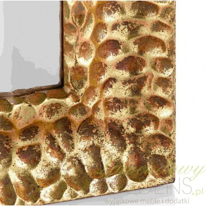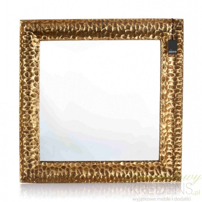 Kwadratowe, duże lustro Aluro to dodatek na ścianę muśnięty delikatnym efektem rdzy. Rzeźbiona rama to jego element rozpoznawczy.