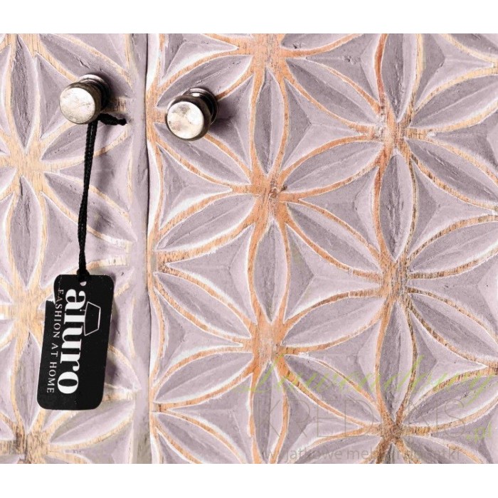 Poznaj jeden z najbardziej inspirujących mebli w tym sezonie. Komoda Nafir wykonana jest z drewna w jasnym kolorze i wypolerowanych, metalowych nóg. Komoda Aluro ma rzeźbione drzwi z regularnym rzeźbieniem w gwieździste wzory. Wewnątrz znajdzie się miejsce nie tylko na drobiazgi ale również na tekstylia, porcelanę i książki. Zamów meble Aluro, a jesteśmy pewni, że od pierwszego dnia użytkowania docenisz ich design i jakość.
