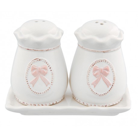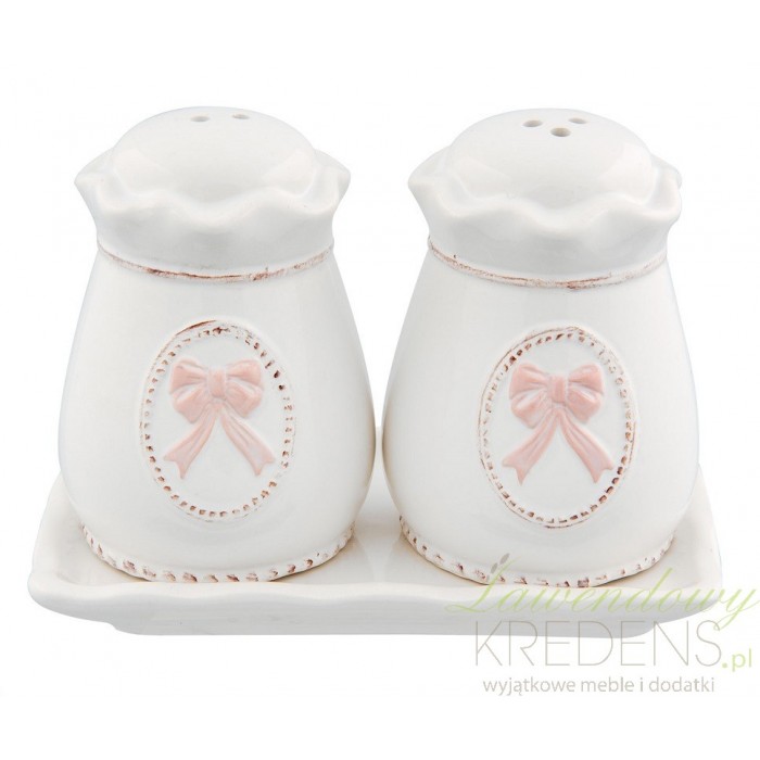 Dodatki do kuchni w lekkich, pastelowych kolorach najlepiej zaprezentują się we wnętrzach urządzonych na styl prowansalski! Na każdym, francuskim stole sprawdzą się ceramiczne akcesoria. Pieprzniczka i solniczka na owalnej podstawie zostały ozdobione różową kokardką, która czyni je niebywale uroczymi. Dodaj do koszyka i zamów juz teraz - dodatki, których potrzebujesz!