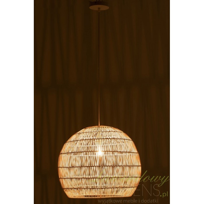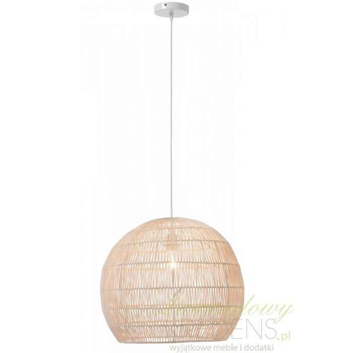 Okrągła lampa skandynawska została utkana z rattanu. Zręcznie połaczone rattanowe wlókna pozwolą stworzyć przytulne i efektowne oświetlenie wnętrza takiego jak salon i jadalnia. Lampa w stylu skandynawskim w jasnobrązowym kolorze z białym kablem podkreśli naturalność każdego pomieszczenia w Twoim domu. Ażurowe lamoy w stylu skandynawskim to sekret każdej, pięknej aranżacji.